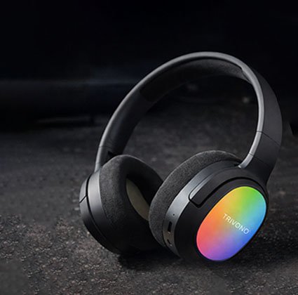 TRIVONO TVHF‑301 is a wireless stereo headphone with long battery life, comfort, and colourful LED earcups for an immersive music